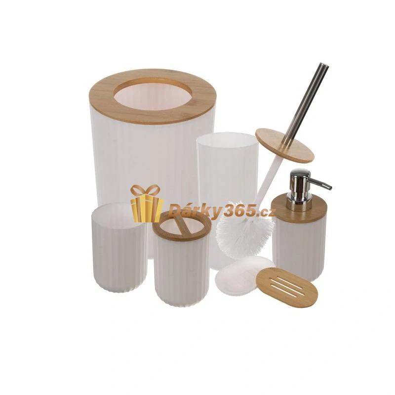 - VYSOCE KVALITNÍ SADA 6 KOUPELNOVÝCH DOPLŇKŮ - sada 6 koupelnových doplňků z vysoce kvalitní PP materiál s bambusovými doplňky je dokonalou kombinací funkčnosti a elegance. Bílá barva a žebrovaný vnější povrch doplňky vnesou do interiéru moderní charakter zároveň zajištění komfortu a hygieny používání.