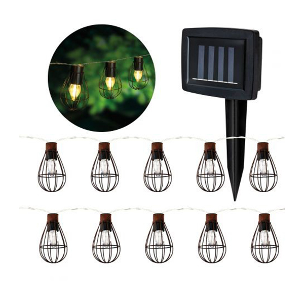 Solární světelný řetěz slouží k ozdobení zahrady nebo terasy a vytvoření romantické atmosféry. Toto zahradní světlo má 10 teplých bílých LED žárovek. Půvabné osvětlení je rovnoměrně rozloženo na 3,8 m dlouhém kabelu a zejména večer bude skutečnou pastvou pro oči. Toto párty světlo je ideální dekorací na večírky a narozeninové oslavy.