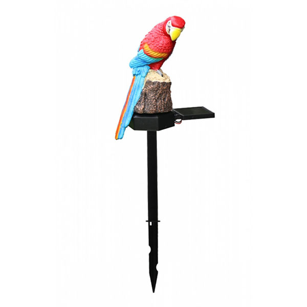 Neobvyklá, solární LED zahradní lampa ve tvaru papouška. Skvělý dekorativní prvek. Lampa je napájena solární energií, která využívá solární panel k nabíjení vestavěné dobíjecí baterie. Zařízení se automaticky spustí, když se setmí (je vybaveno senzorem soumraku) a plné nabití baterie postačí až na 8 hodin nepřetržitého provozu. Lampa má LED, která vyzařuje bílé světlo. Silný hrot umožňuje spolehlivou a rychlou instalaci lampy do země a vodotěsný kryt zaručuje bezproblémové použití bez ohledu na povětrnostní podmínky.